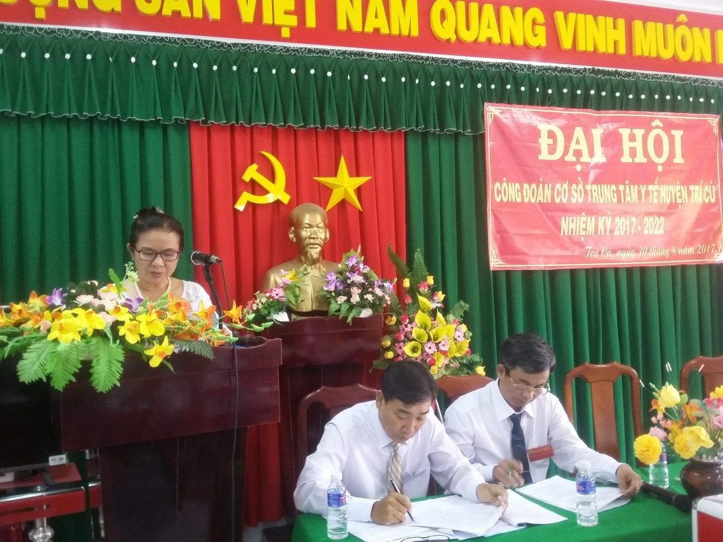 Đại hội đã nghe Đồng chí Trương Hữu Hòa trình bày báo cáo kết quả hoạt động của Công đoàn trong nhiệm kỳ 2013 – 2017. Trong nhiệm kỳ vừa qua, dưới sự Lãnh đạo của Chi bộ, Công đoàn cơ sở Trung tâm Y tế huyện Trà Cú đã hoàn thành tốt nhiệm vụ được giao. Nhìn chung, hoạt động công đoàn và phong trào Công đoàn đã bám sát Nghị quyết của Cấp ủy Đảng, chương trình công tác của Công đoàn cấp trên và gắn với nhiệm vụ chuyên môn của cơ quan. Các chế độ, chính sách của đoàn viên Công đoàn được lãnh đạo đơn vị thực hiện đầy đủ, nghiêm túc. Hàng năm, Ban Chấp hành Công đoàn phối hợp cùng Lãnh đạo đơn vị tổ chức Hội nghị cán bộ công chức và phát động phong trào thi đua, thực hiện Quy chế dân chủ… Công đoàn đơn vị luôn hưởng ứng các phong trào văn nghệ, thể dục, thể thao nhân kỷ niệm các ngày lễ lớn của cả nước, ngày thành lập ngành…