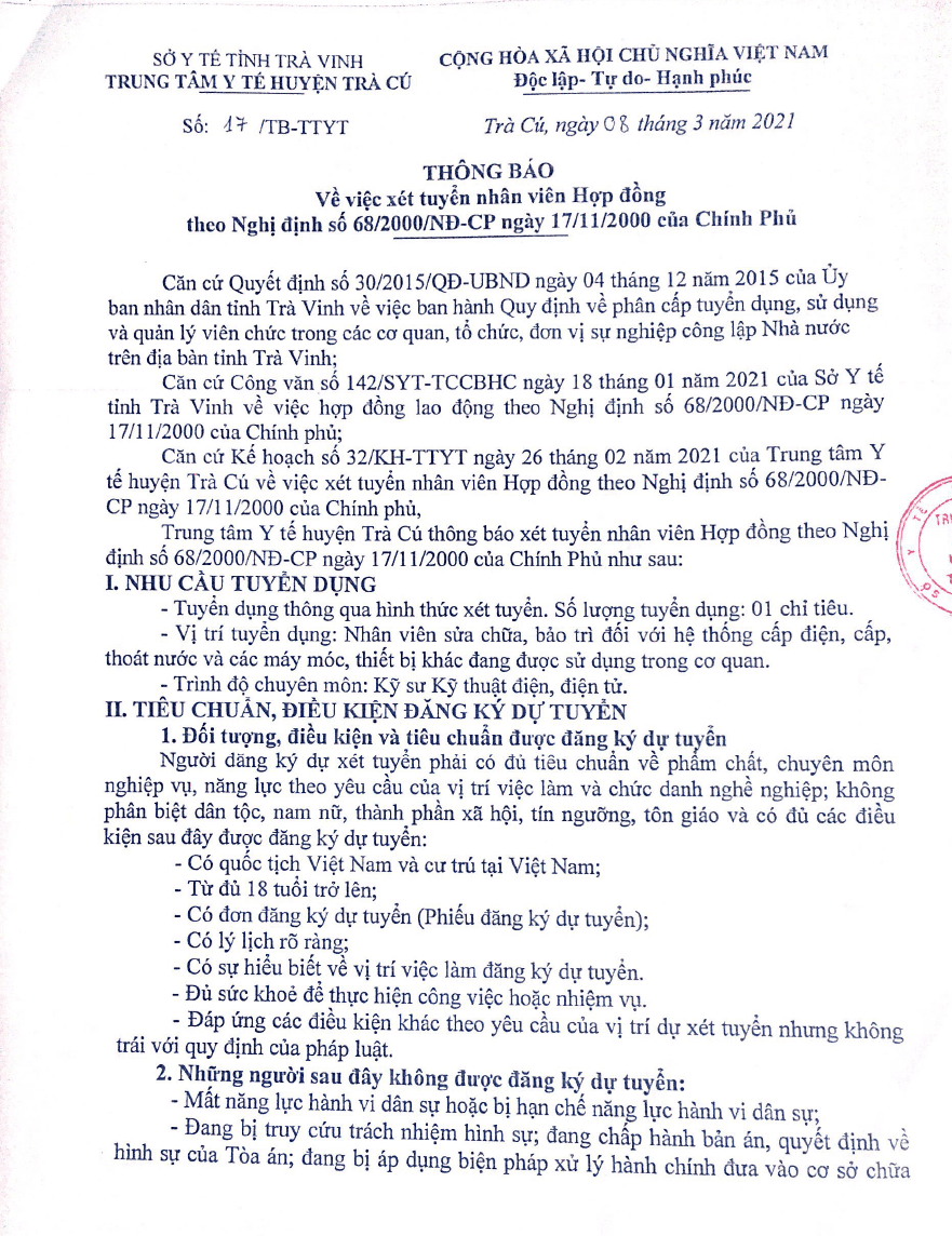 THÔNG BÁO TUYỂN DỤNG NĐ 68