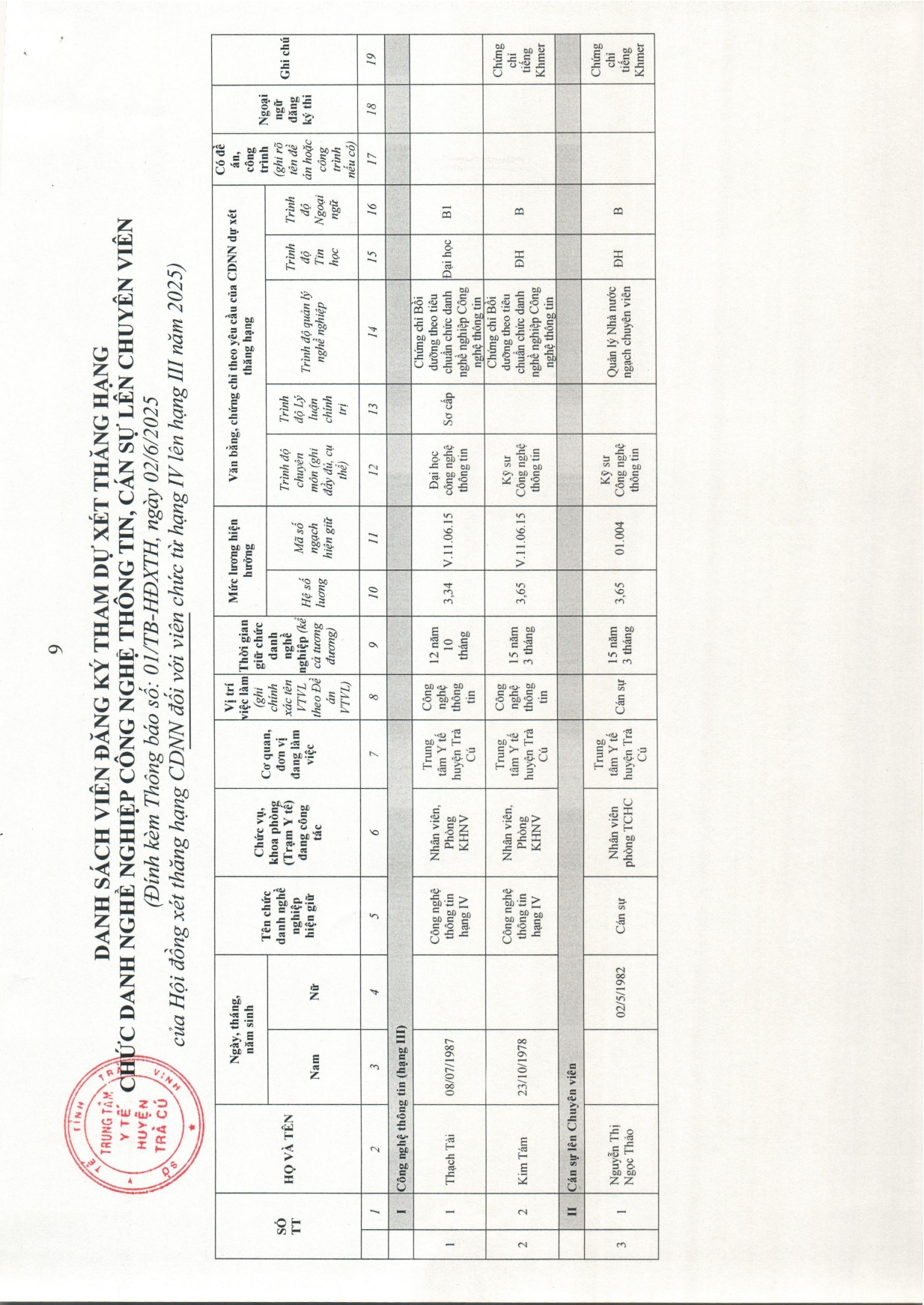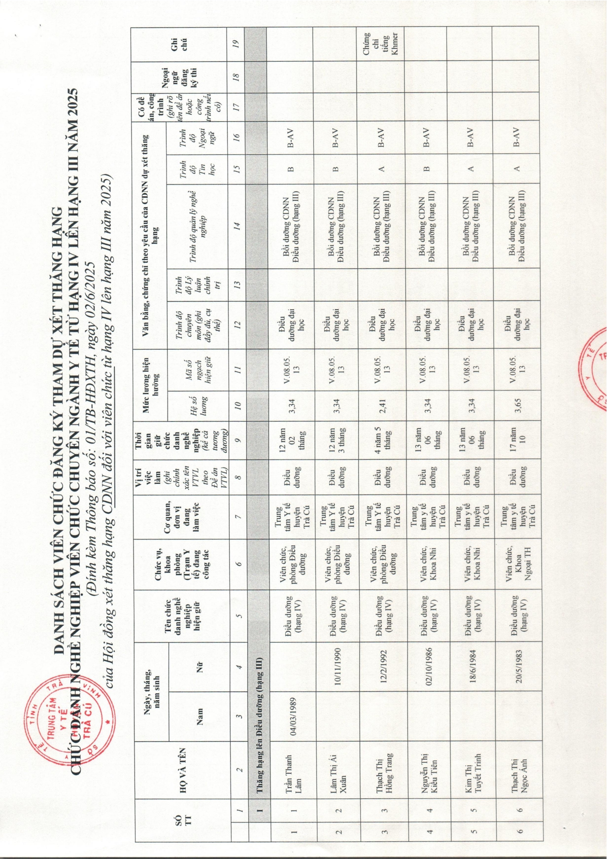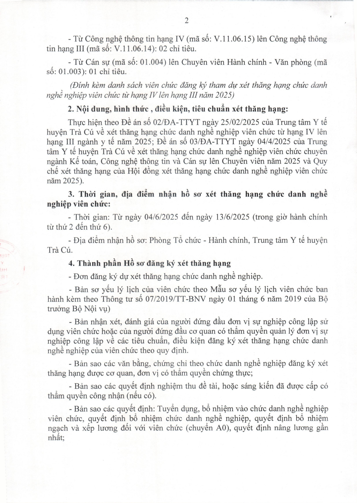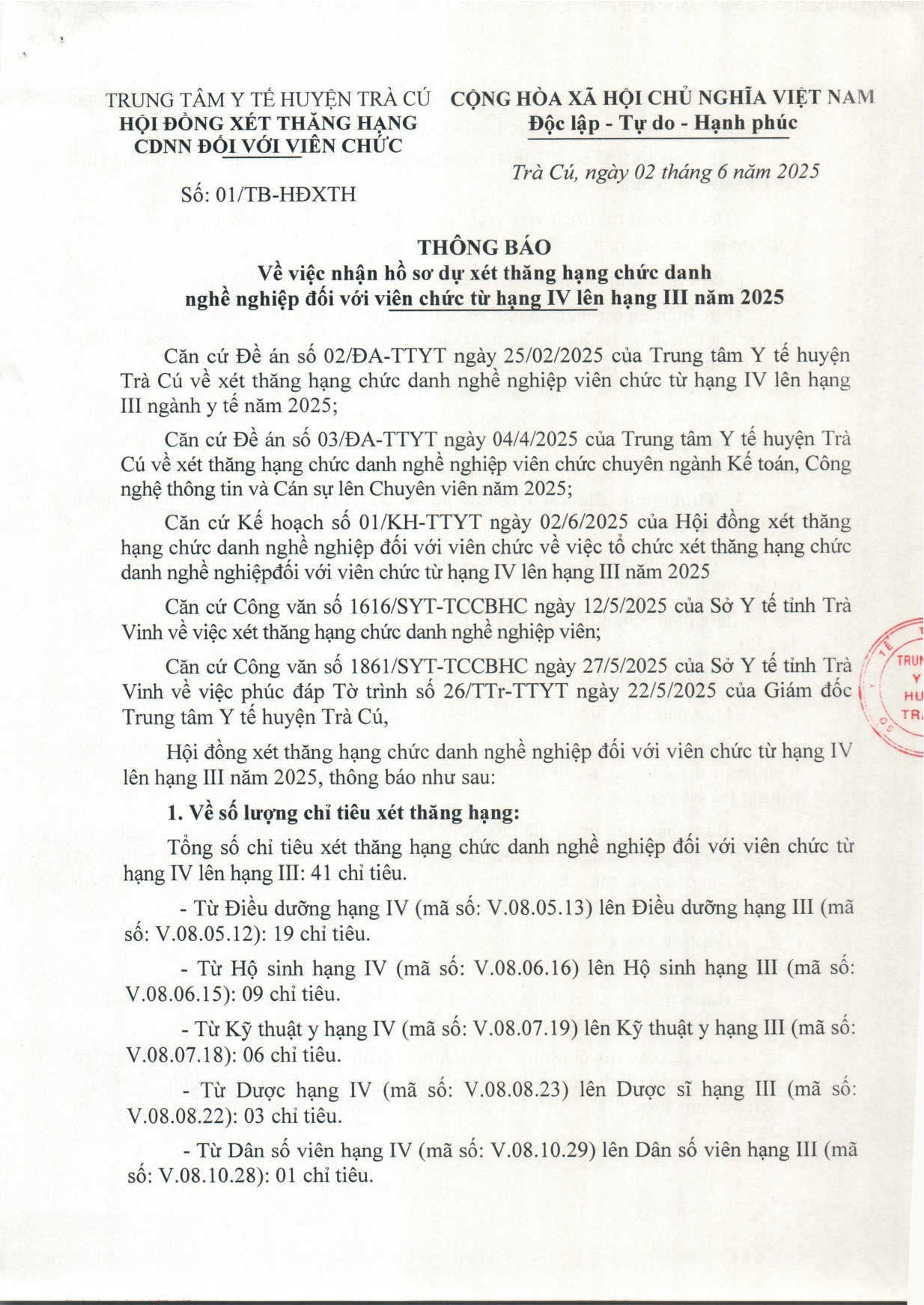 Thông báo về việc nhận hồ sơ dự xét thăng hạng chức danh nghề nghiệp đối với viên chức từ hạng IV lên hạng III năm 2025 Ngày đăng: 03/06/2025 - 14:03 Về việc nhận hồ sơ dự xét thăng hạng chức danh nghề nghiệp đối với viên chức từ hạng IV lên hạng III năm 2025 Chia sẻ: | In bài viết