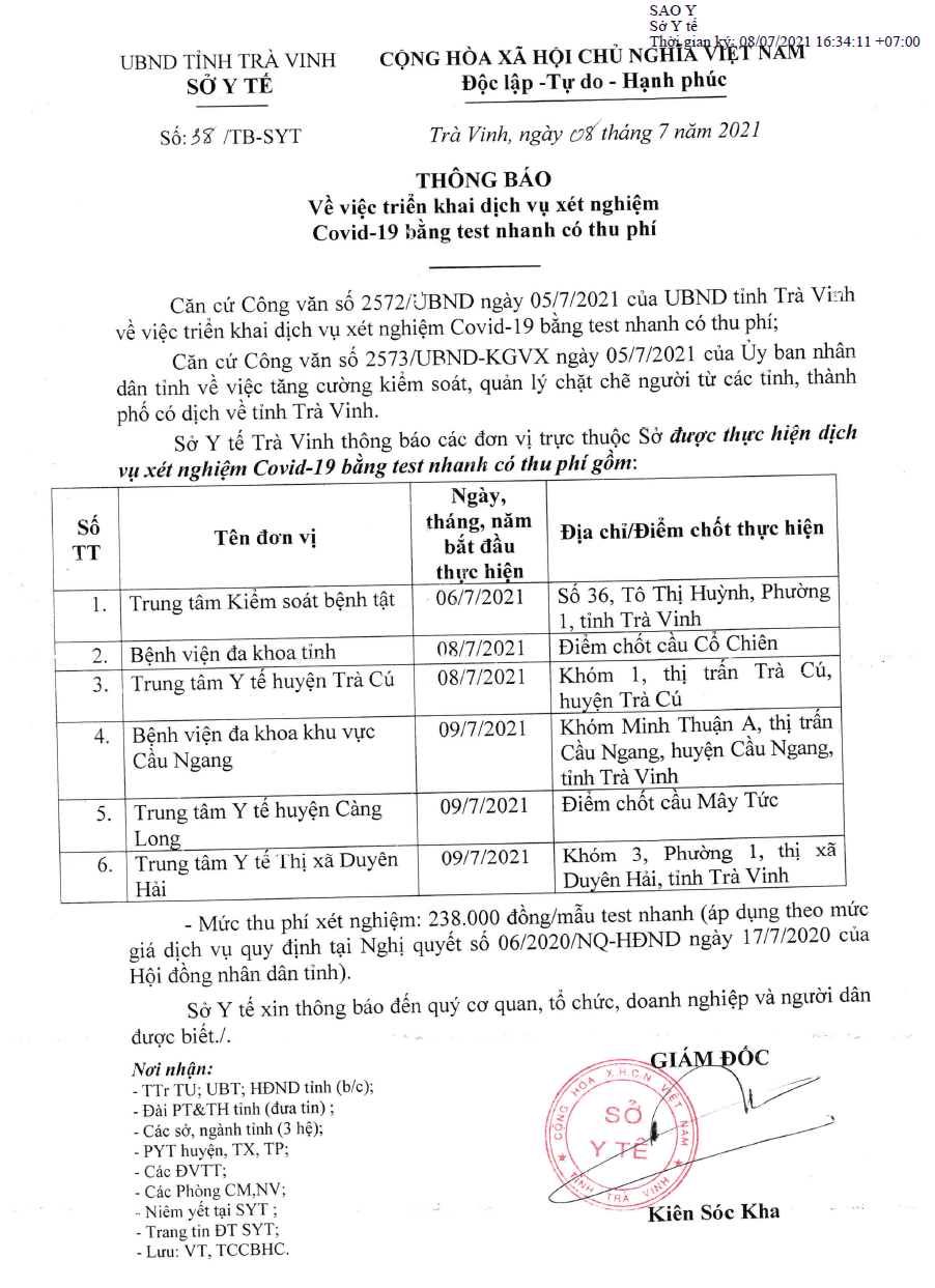 Thông Báo Về Việc Triển Khai Dịch Vụ Xét Ngiệm Covid-19 bằng Test Nhanh Có Thu Phí Ngày đăng: 09/07/2021 - 10:06 Chia sẻ: | In bài viết